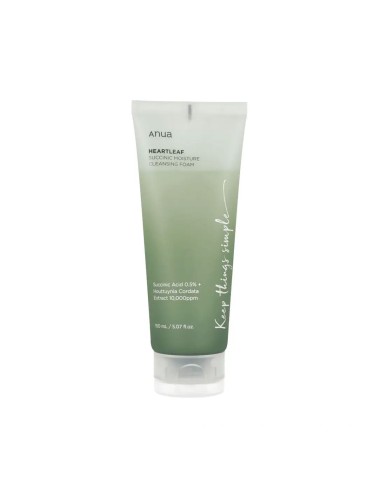 AnuaDescubre la suavidad del Anua Heartleaf Succinic Moisture Cleansing Foam, tu nuevo aliado para una piel profundamente limpia e hidratada. Enriquecido con extracto de Heartleaf, este agente limpiador limpia eficazmente mientras calma y revitaliza la piel. Ideal para todo tipo de piel.