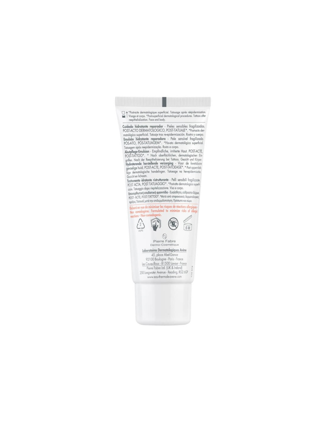 Avene Cicalfate Emulsión Hidratante Reparadora es un cuidado hidratante y reparador, para el rostro y el cuerpo de los adultos, desarrollado para responder a las necesidades de las pieles sensibles debilitadas después de tatuajes y procedimientos dermatológicos superficiales: láser, peelings químicos.