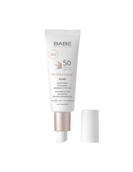 Babé HealthyAging Fluid Fotoprotector SPF50 tiene una textura fluida que hidrata la piel sin dejarla grasa. Formulado con: