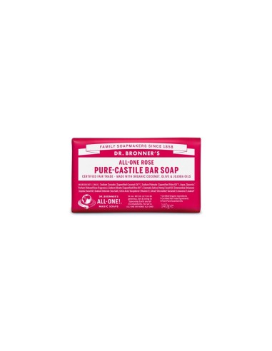 Dr. El Jabón de Castilla Biológico Bronners es un jabón de fórmula sencilla y ecológica, de origen vegetal y biodegradable. Están elaborados con ingredientes certificados de comercio justo y aceites orgánicos para una espuma suave que no reseca la piel. Con una fórmula sencilla y ecológica, los jabones biológicos Dr.Bronner's son de origen vegetal y 100% biodegradables. Suaves y eficaces, son perfectos para lavar el cuerpo, el rostro o el cabello. Envases de papel 100% reciclado postconsumo. Con una fragancia floral y romántica a Rose.