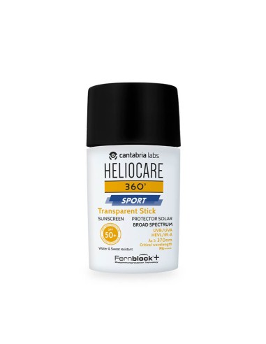 Heliocare 360 Sport Transparent Stick SPF50+ es un cosmético en formato stick que asegura una muy alta protección solar frente a los rayos UVA, UVB, luz visible e infrarrojos. Ideal para los amantes de los deportes al aire libre.