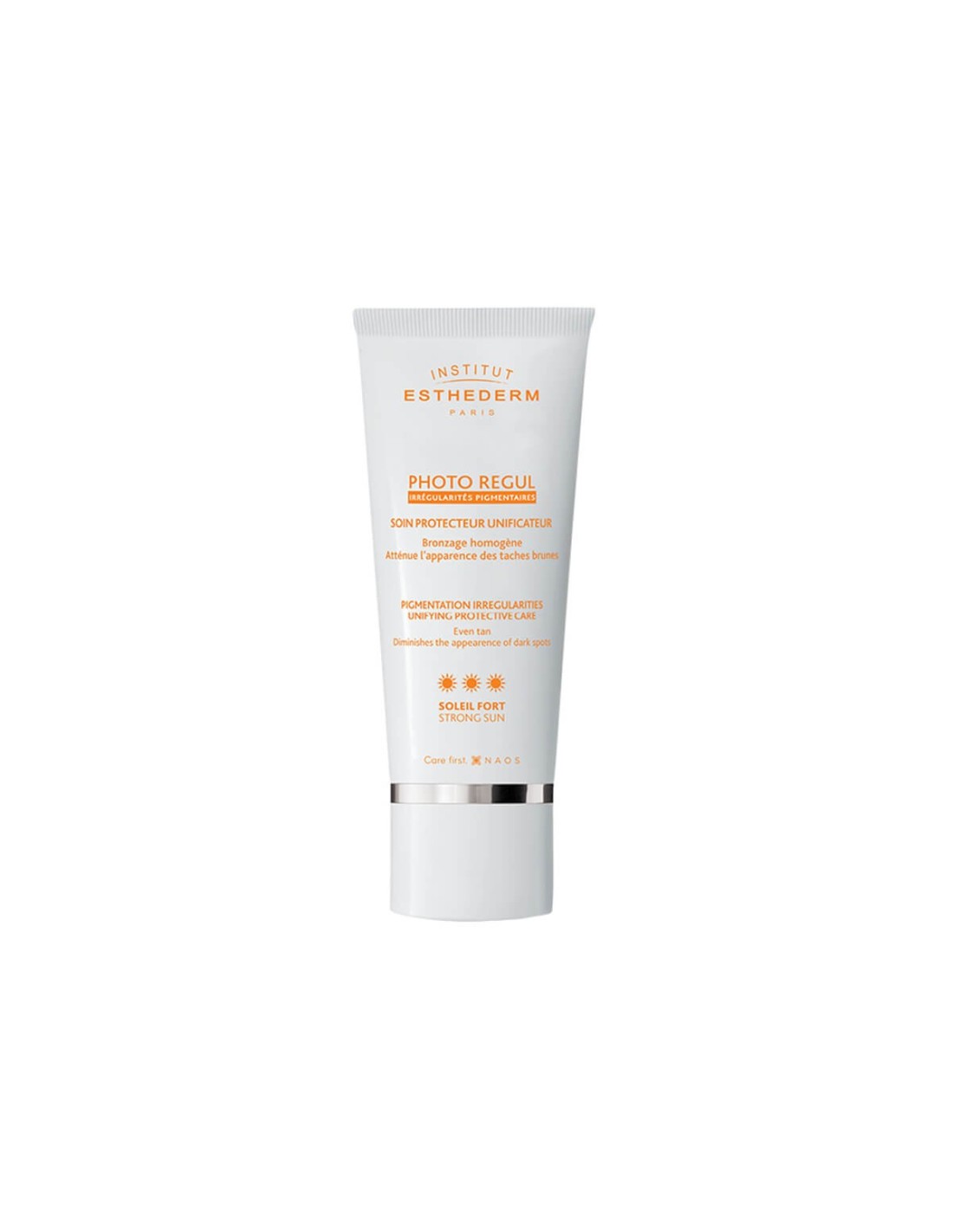 Cuidado fotoprotector uniformizador de las irregularidades pigmentarias. Un bronceado homogéneo que atenúa las irregularidades de la hiperpigmentación cutánea. Inhibe la formación de manchas. Prevención del fotoenvejecimiento y de los daños celulares, cuidado compensador de la deshidratación provocada por la fotoexposición.