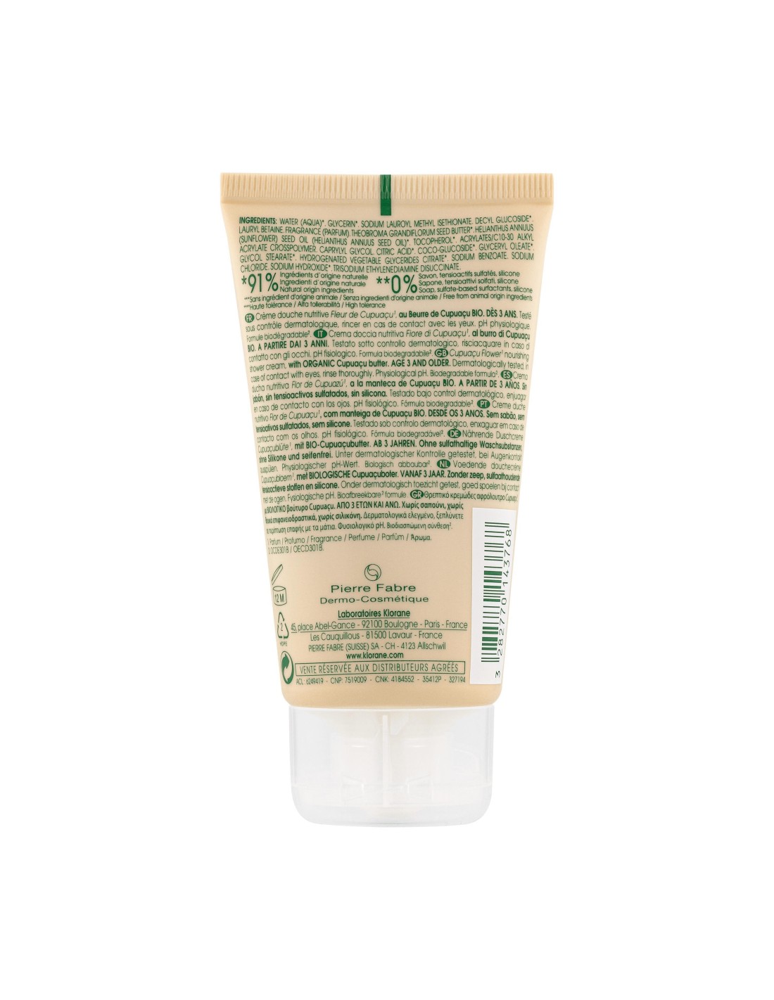 La crema de cuerpo nutritivo Klorane con Mantequilla de Capuaçu orgánica es indicada para nutrir, limpiar y reparar la barrera lipídica en la piel seca y muy seca. Formulado con 96% de ingredientes de origen natural. Fragancia con notas de nuez de capuaçu, frésia, y leche de algodón.