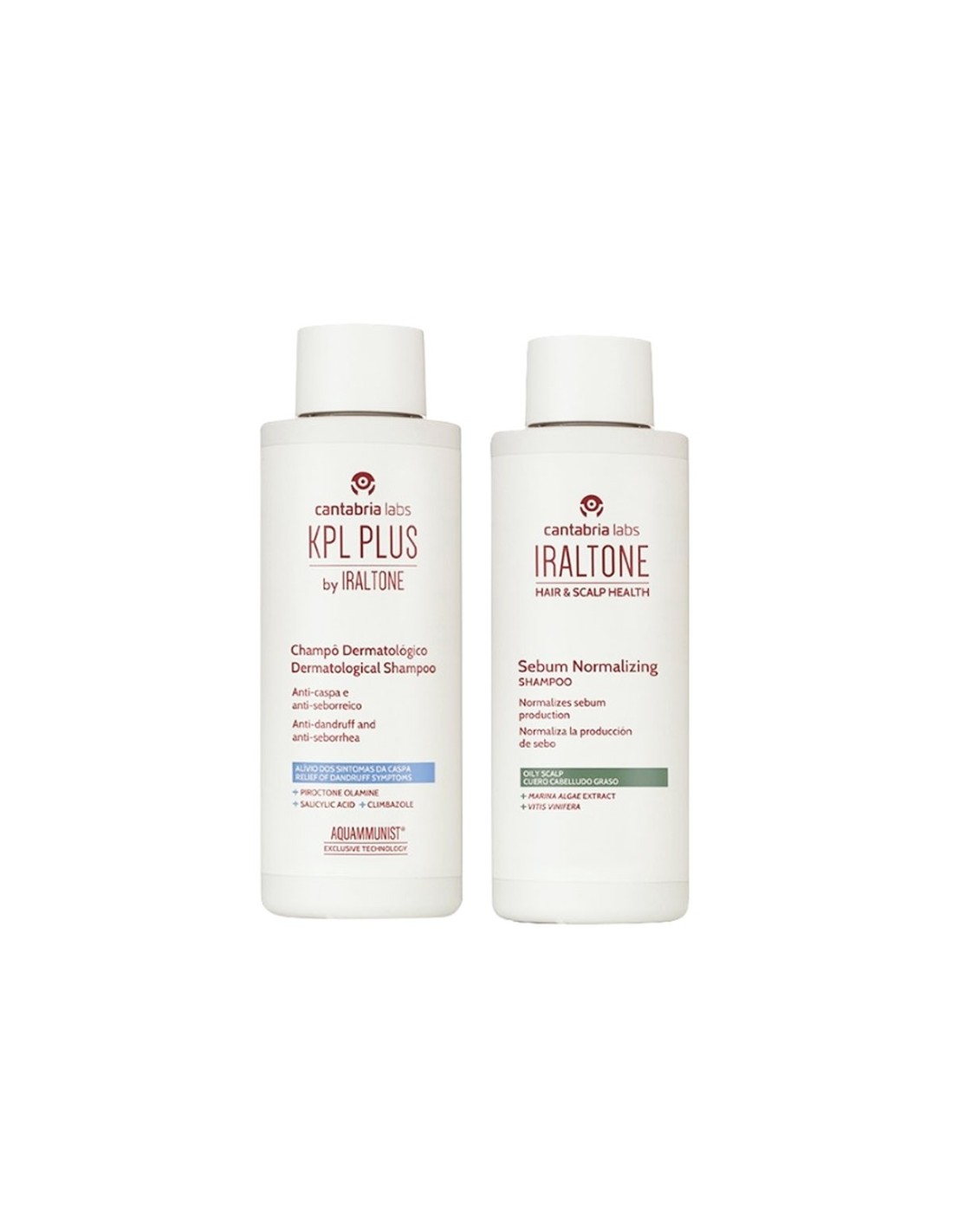 KPL Plus Pack Dermatological Shampoo and Iraltone Sebum-Normalizing Shampoo es un pack promocional compuesto por dos productos anticaspa para el cuidado del cuero cabelludo graso: champú anticaspa y champú de uso diario. Para hombres y mujeres.