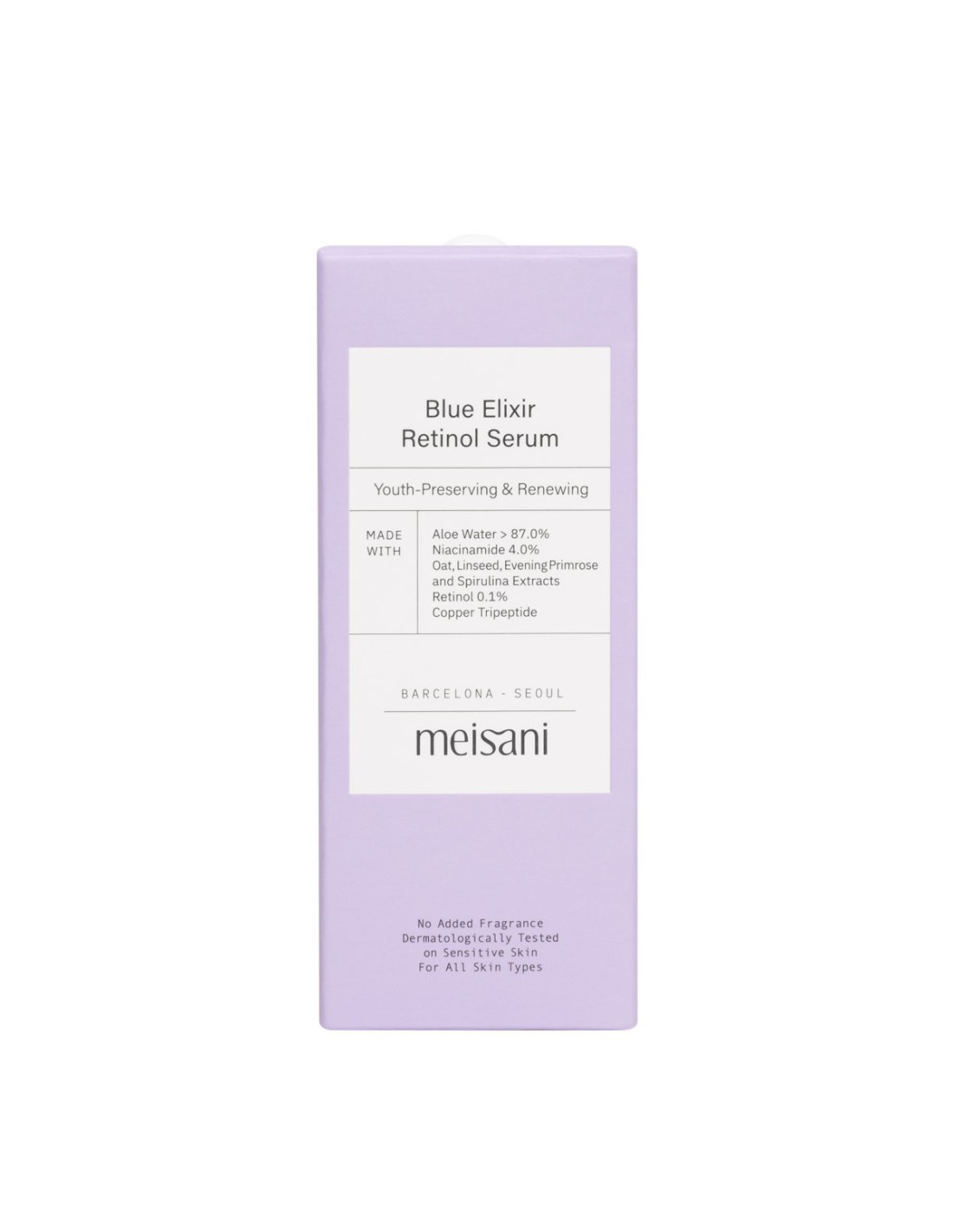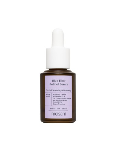 El Meisani Blue Elixir Retinol Serum es un sérum facial con acción contra el envejecimiento, desarrollado para combatir arrugas, líneas finas, pérdida de firmeza e irregularidades en el tono y la textura de la piel. Indicado para todo tipo de piel, incluidas las sensibles, gracias a su fórmula suave y equilibrada, este sérum es ideal para aquellos que desean incorporar el retinol en su rutina de cuidado de manera segura y eficaz, revelando una piel más joven, luminosa y uniforme.