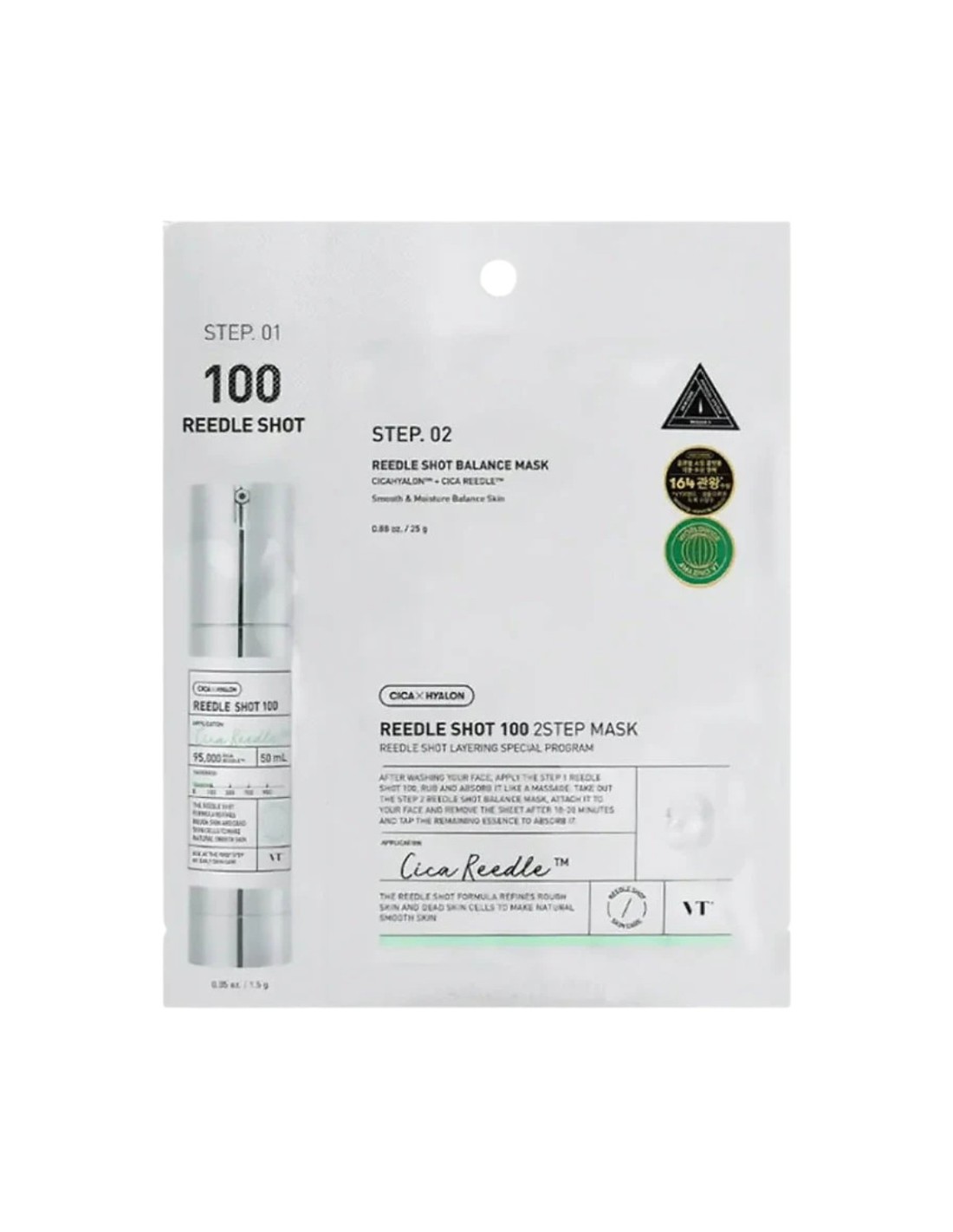 VT CosmeticsDescubre la máscara de dos etapas VT Cosmetics Reedle Shot 100 - tu solución para una piel revitalizada y luminosa. Esta máscara de dos pasos combina ingredientes calmantes e hidratantes, perfecta para rejuvenecer y nutrir intensamente. Ideal para todo tipo de piel, brinda cuidados especializados y resultados visibles. ¡Experimenta la innovación en cuidado de la piel!